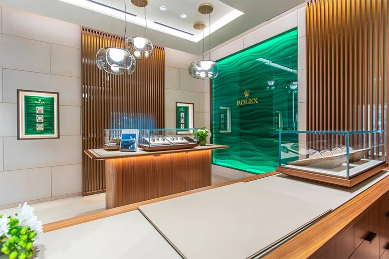 In 2024, the boutique expanded into a brand-new, Rolex custom-designed 3,000-square-foot space with refined banquets and tables, elegant lighting and private spaces for clients to enjoy learning about different models with the assistance of dedicated staff. The boutique also features an immersive experience of James Cameron’s dive to the bottom of the Mariana Trench and the Deepsea model that accompanied his expedition. The boutique was designed with nautical elements that reflect Rolex’s connection to the ocean and pays homage to the San Diego area.